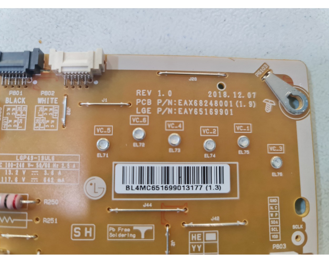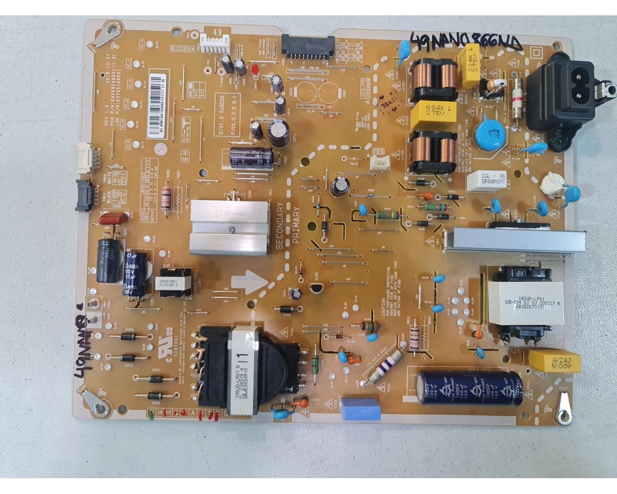 EAX68248001 (1.9) Fuente de alimentación LG 49Nano866NA, reacondicionada procedente de TV con golpe en panel LCD, testeada y comprobado su funcionamiento en taller.