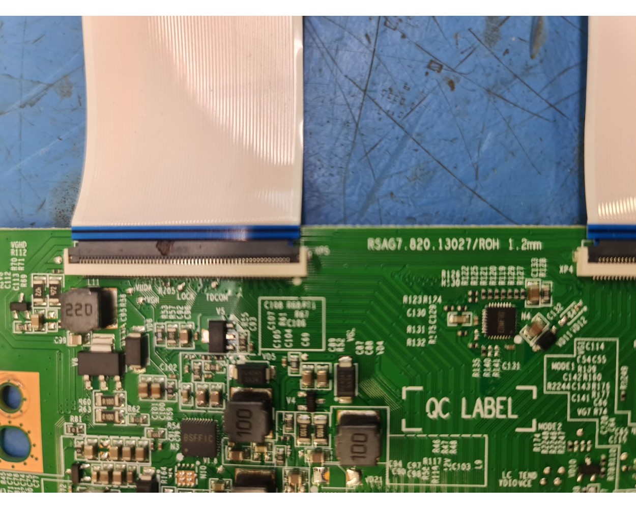 RSAG7.820.13027 TCON para HISENSE 65A7NQ A23450D, reacondicionada procedente de TV con golpe en panel LCD, testeada y comprobado su funcionamiento en taller.